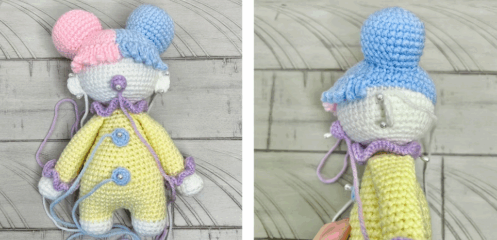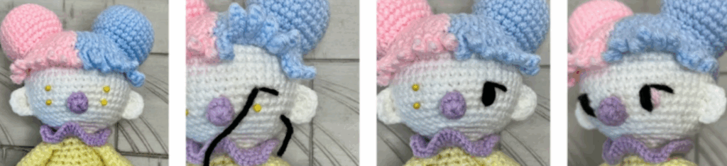 Por último, me gusta bordar los ojos y añadir cualquier otro accesorio para que mi payasito sea único.