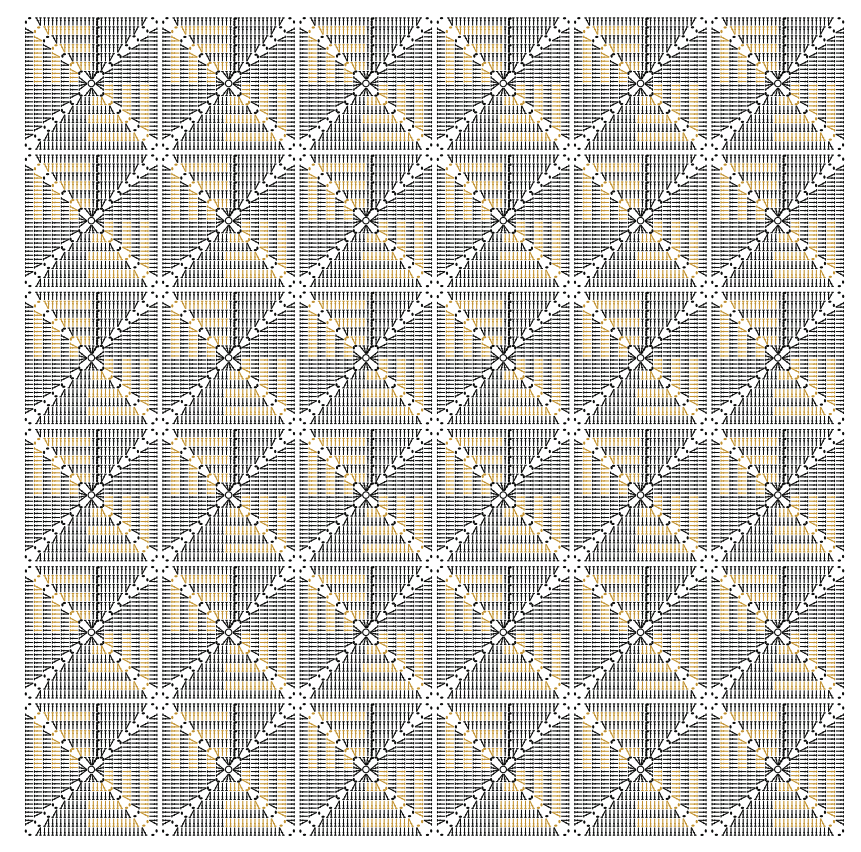 Muestra: cada motivo del gráfico 1, realizado con hilo Barroco Natural 4/6 y 3,5 mm de grosor, mide 20 x 20 cm