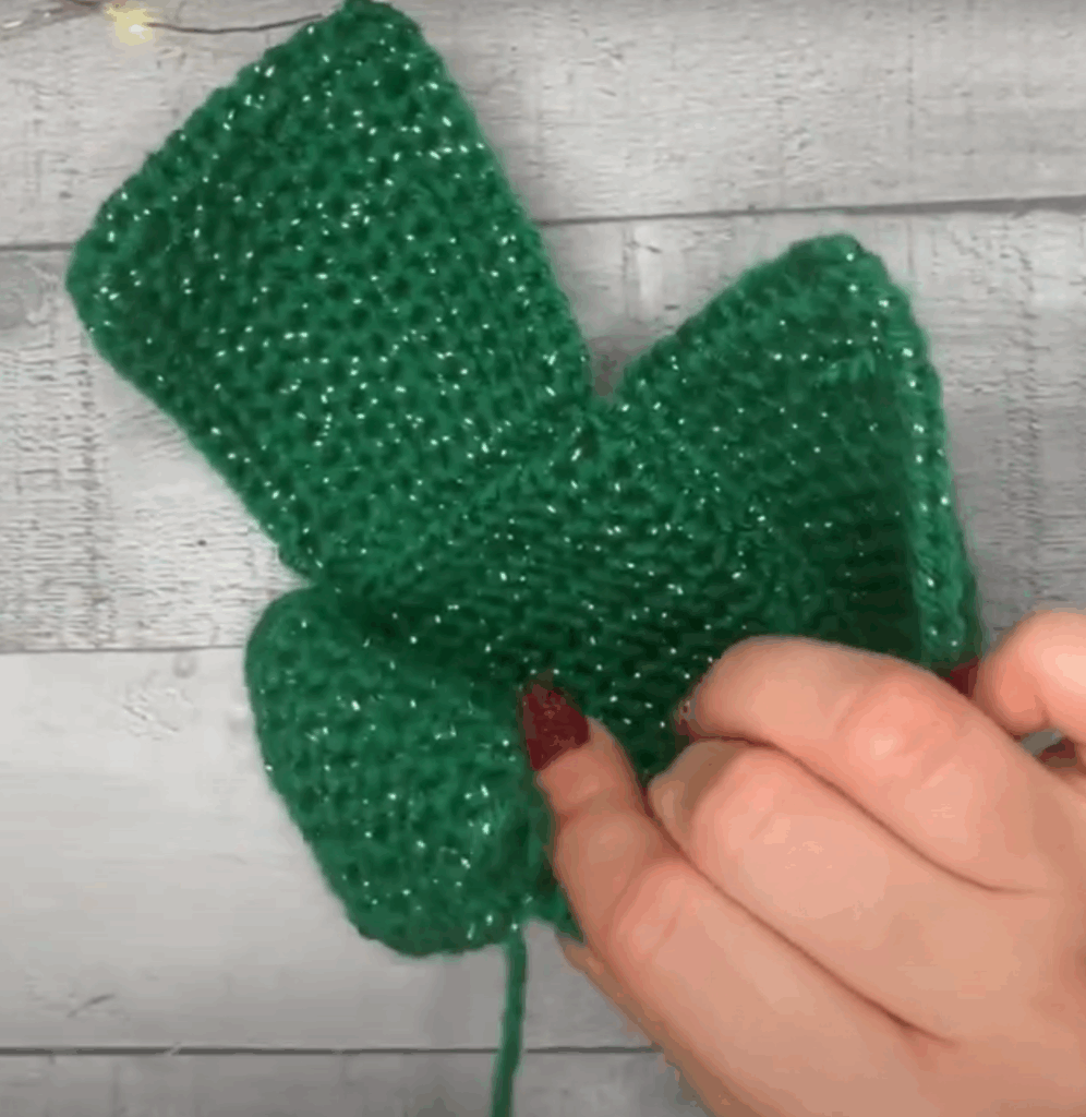Con hilo plateado, haz un lazo pequeño o aro y átalo en una esquina para poder colgar tu adorno de crochet en el árbol de Navidad. 🎄