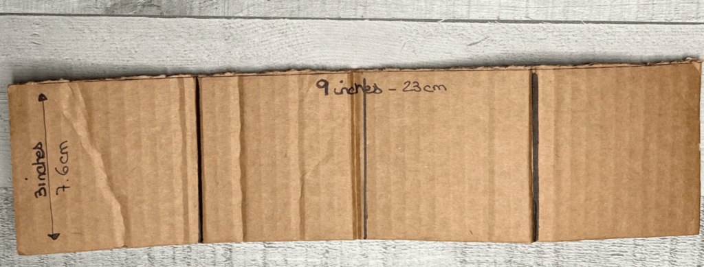 - Trozo de cartón de 23 cm de ancho x 8 cm de alto