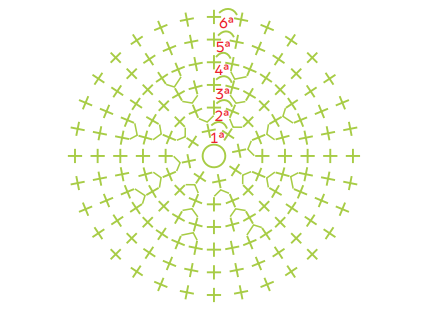 Continuar siguiendo el diagrama 2, trabajando en carreras circulares y realizando los cambios de color correspondientes.