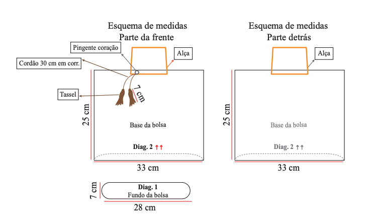 Teje una cadena de 30 cm. Ata una borla en cada extremo. Dobla el cordón por la mitad y fíjalo al mosquetón decorativo. Coloca el mosquetón en la parte frontal del bolso, justo debajo del asa.