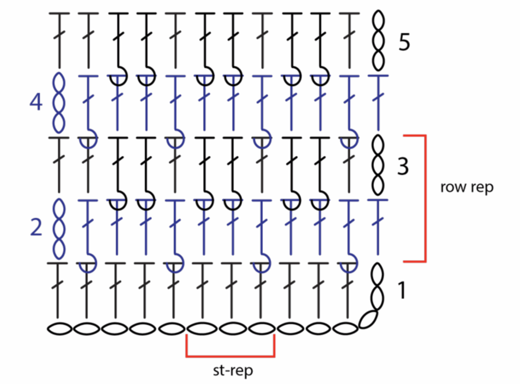 - Punto Alto (Vara/Vareta): Es la base de este patrón. Practica hacer varias filas de puntos altos uniformes.