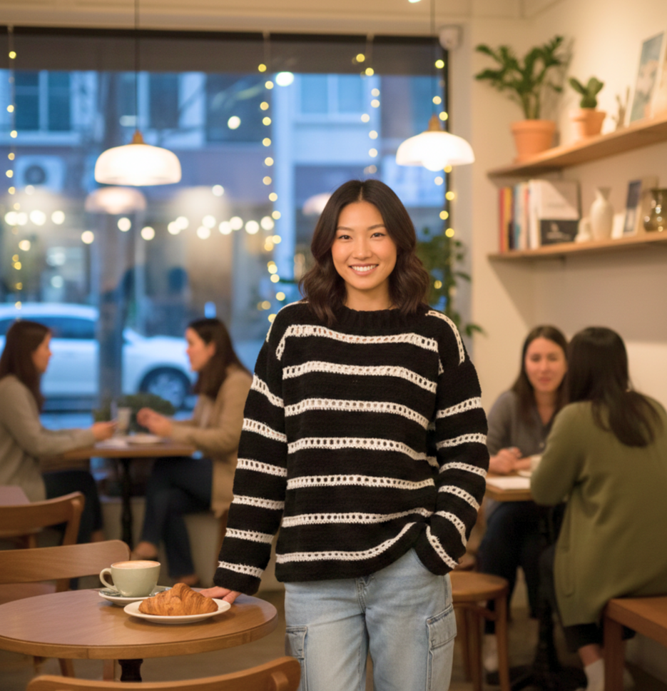 La magia de este jersey radica en su increíble versatilidad. Puedes combinarlo con unos jeans clásicos para un look de diario sofisticado, como se ve en la imagen, o elevarlo con una falda midi y botas para una cena especial 👖👠. Es la prenda ideal para los días de transición climática gracias a su combinación de puntos tupidos y calados. Al ser una pieza creada por ti, tienes la ventaja de elegir fibras premium como algodón mercerizado o mezclas de lana suave para que se convierta en ese básico duradero que querrás usar todo el año. ☕✨